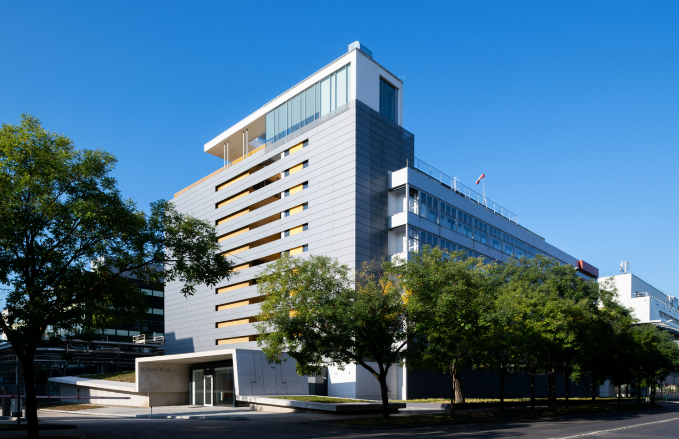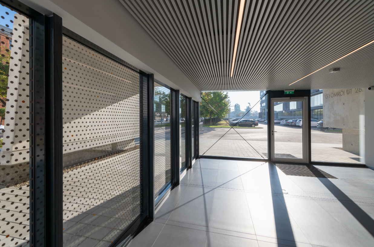 A látogatóközpont tervezője, egy igen látványos, de nagy szakértelmet igénylő megoldást képzelt el a Richter Gedeon Gyár alapításának 120. évfordulója alkalmából elkészült látogatóközpont bejáratához. A monolit vasbeton szerkezetű bejáratot látszóbeton minőségben kellett elkészíteni és már az első percben egyértelmű volt, hogy a felépítmény geometriájából, és az előírt betonfelületi minőségből adódóan, komoly szakértelmet igénylő, egyedi zsaluzatot kíván. A kivitelező GEDI Építő cégünk szakértelmét és innovatív zsalurendszereit tartotta alkalmasnak a megvalósításhoz. A megrendelő tervezett lenyomatú látványbeton felületeket kért, amelyhez a zsaluzatot úgy kellett kialakítani, hogy a munkahézagokból eredő nyomok az elkészült falakon sehol ne látszódjanak.