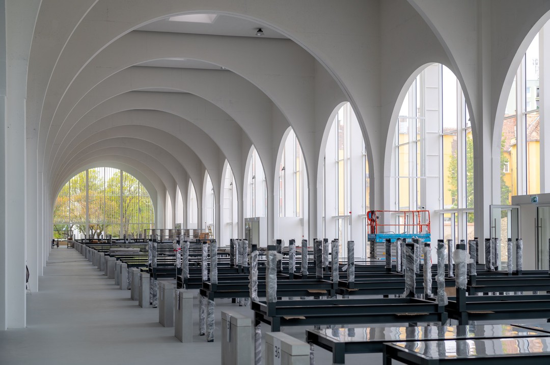 A Mammut 350 egyik erőssége különösen jól látható ebben az épületben: az álló és fekvő zsaluelemek szimmetrikus átkötés- és fugaképe lehetővé tette a felületek esztétikai szempontú kialakítását. Az alapfelszereléshez tartozó integrált alkus teljes műanyag zsaluhéj az építkezés ideje alatt végig és valamennyi falon lehetővé tette a látszóbeton felületek homogén megjelenését. Nem beszélve arról, hogy az alkus lemezek könnyen tisztíthatók és javíthatók, ami az építkezéseken jelentős időmegtakarítást jelent.