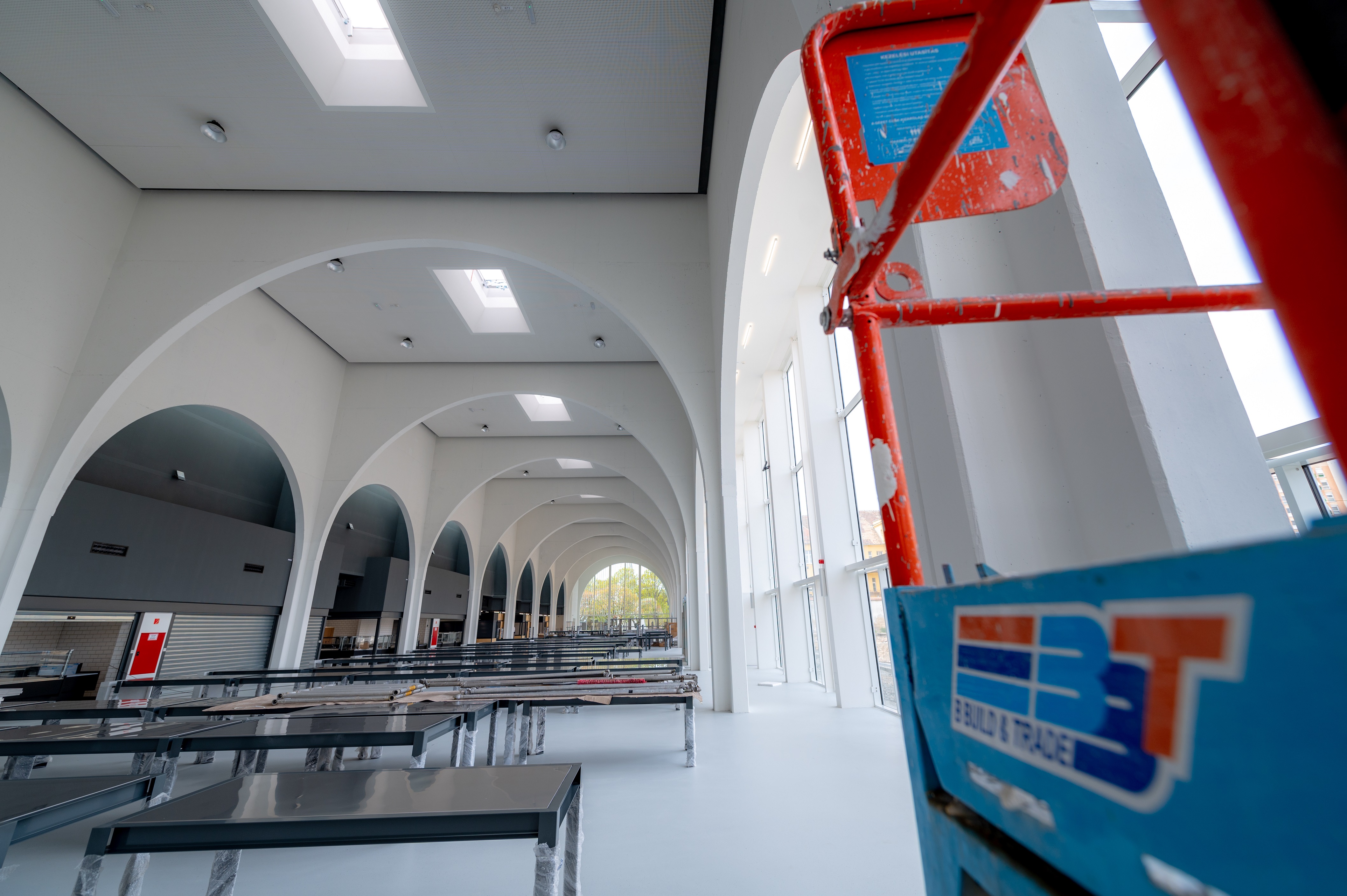 Az anyagok eltérő tágulási tulajdonságaiból adódó feszültségek miatti a repedések kialakulását úgy küszöbölták ki, hogy az épület hatalmas betonfelületeit – köztük a két nagy, belső árkádot is – dilatációs hézagokkal alakították ki, és speciális betont használtak, melynek alapanyaga a Lafarge által kötőanyagként szállított speciális cement, s amelynek köszönhetően a teherhordó szerkezetek repedési hajlama alacsony.